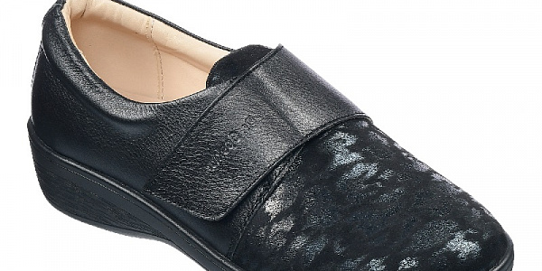 Увеличенный подъем и пространство носочной части позволяют стопам чувствовать себя свободно в течение всего дня, дополнительные резинки в области подъема регулируют обувь по полноте.